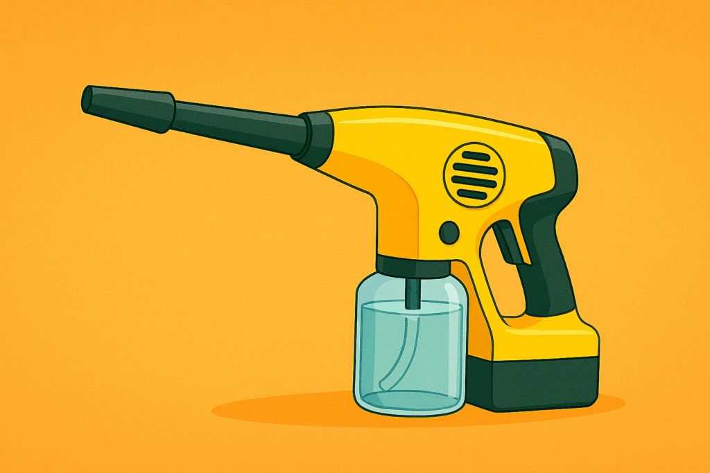 従来の高圧洗浄機は電源や水道が必須でしたが、このモデルはUSB充電式でコードレス。