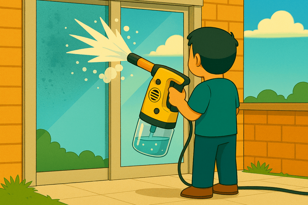 玄関やベランダの汚れが気になるけど、高圧洗浄機って大きくて準備が面倒なんだよね…
